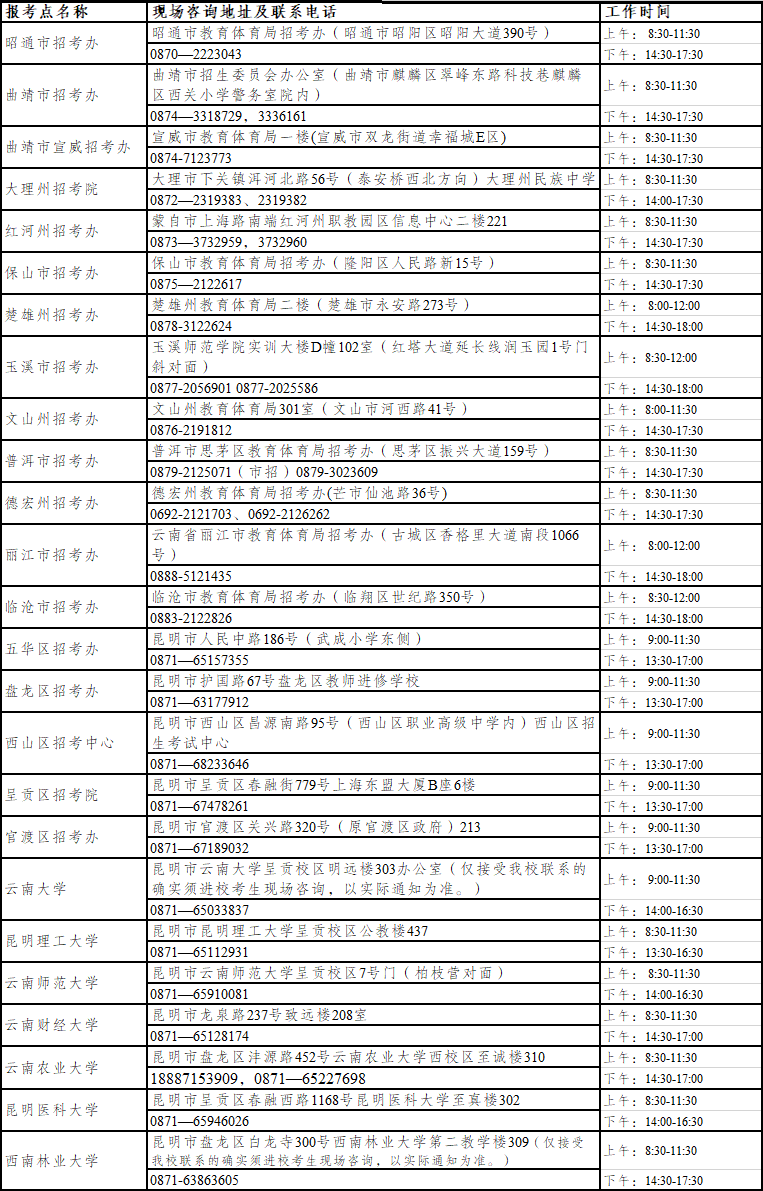 地址:昭通市教育體育局招考辦(昭陽大道390號)。