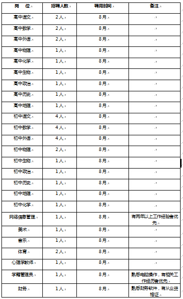 4、有縣級(jí)以上重點(diǎn)中學(xué)工作經(jīng)歷者優(yōu)先;