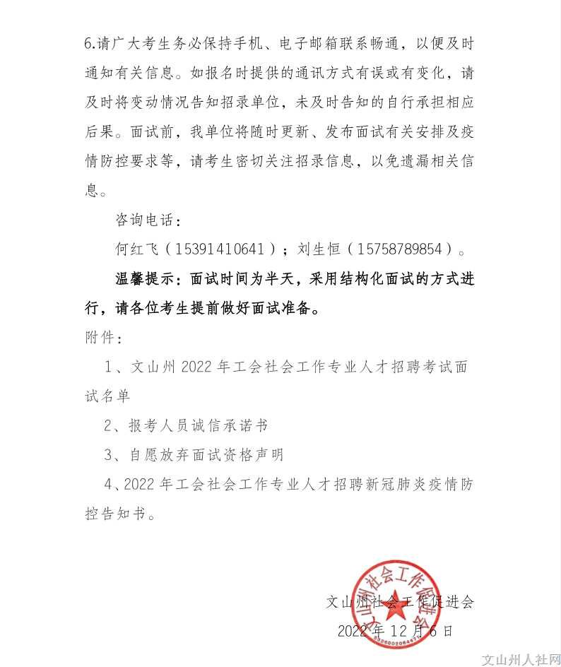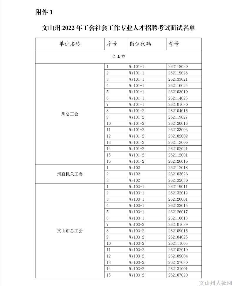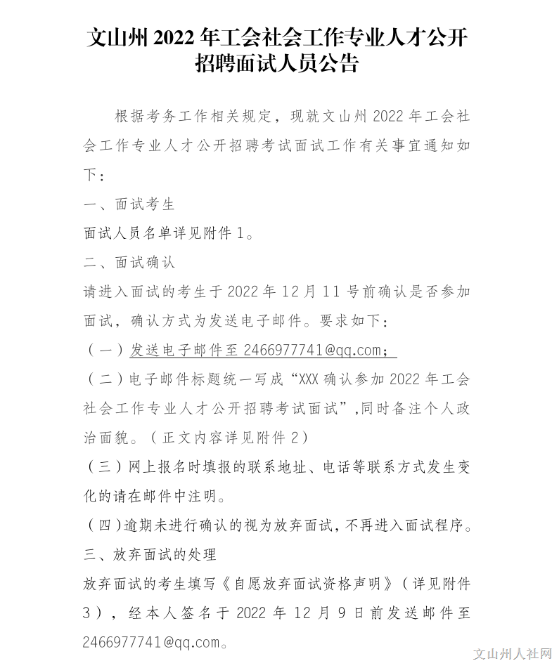 附件4 文山州2022年工會社會工作專業(yè)人才公開招聘面試人員公告.doc