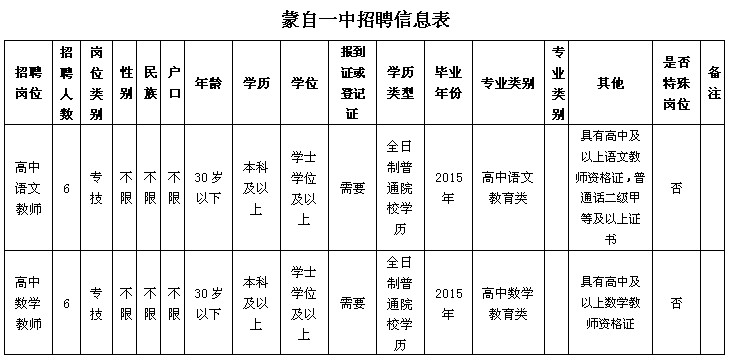 (三)具備招聘崗位其它所需的條件,詳見(jiàn)《蒙自市2015年事業(yè)單位緊缺人才招聘崗位信息表》。