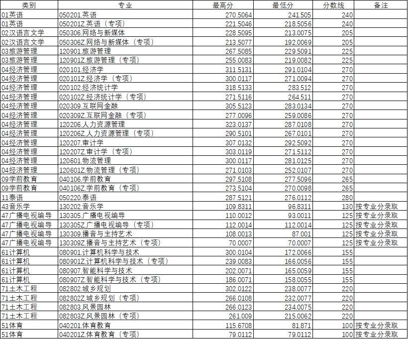 2022年昆明文理學(xué)院專升本錄取分?jǐn)?shù)表(普通加專項)