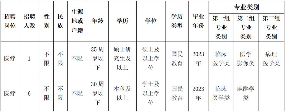 高等院校醫(yī)學類本科及以上學歷畢業(yè)后直接參加國家計劃內(nèi)住院醫(yī)師規(guī)范化培訓,2023年國家住院醫(yī)師規(guī)范化培訓合格且具有國家執(zhí)業(yè)醫(yī)師資格,參加醫(yī)療衛(wèi)生行業(yè)招聘醫(yī)學類崗位的,視為2023年度應(yīng)屆畢業(yè)生(資格復審時須提供成績單、合格證明,否則取消聘用資格)。