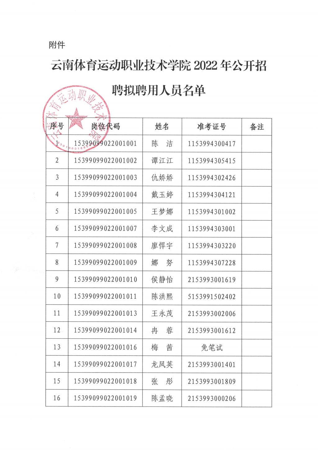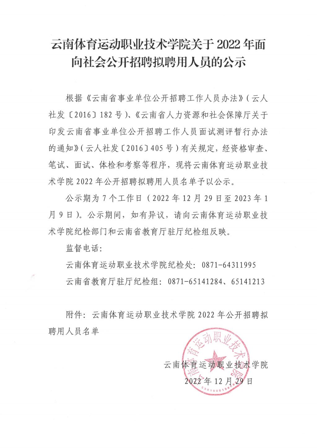 云南體育運動職業(yè)技術(shù)學(xué)院關(guān)于2022年面向社會公開招聘擬聘用人員的公示
