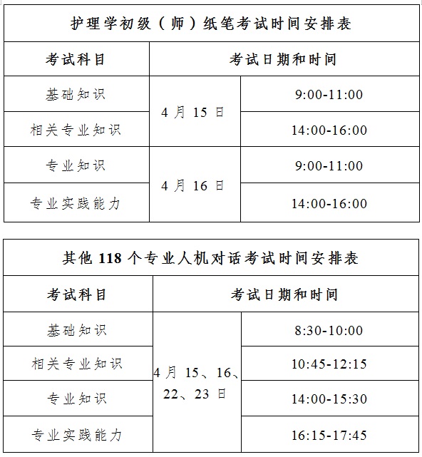 2023年護理學(xué)初級(師)專業(yè)采用紙筆作答方式進行考試,其他118個專業(yè)采用人機對話方式進行考試,具體安排如下: