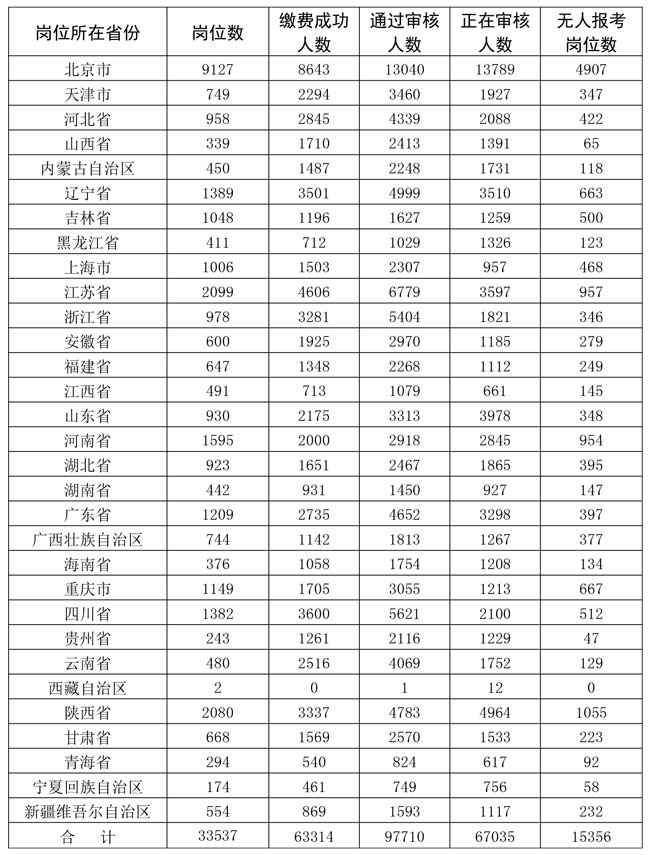1.截至1月15日17時各省份崗位報考情況統(tǒng)計表