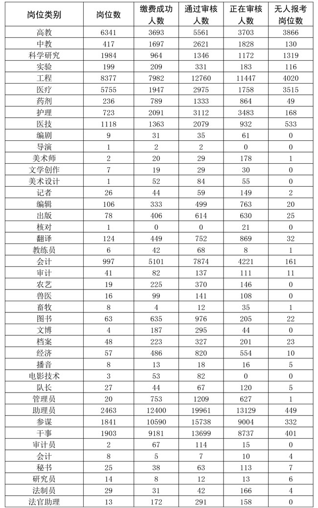 2.截至1月15日17時各崗位類別報考情況統(tǒng)計表