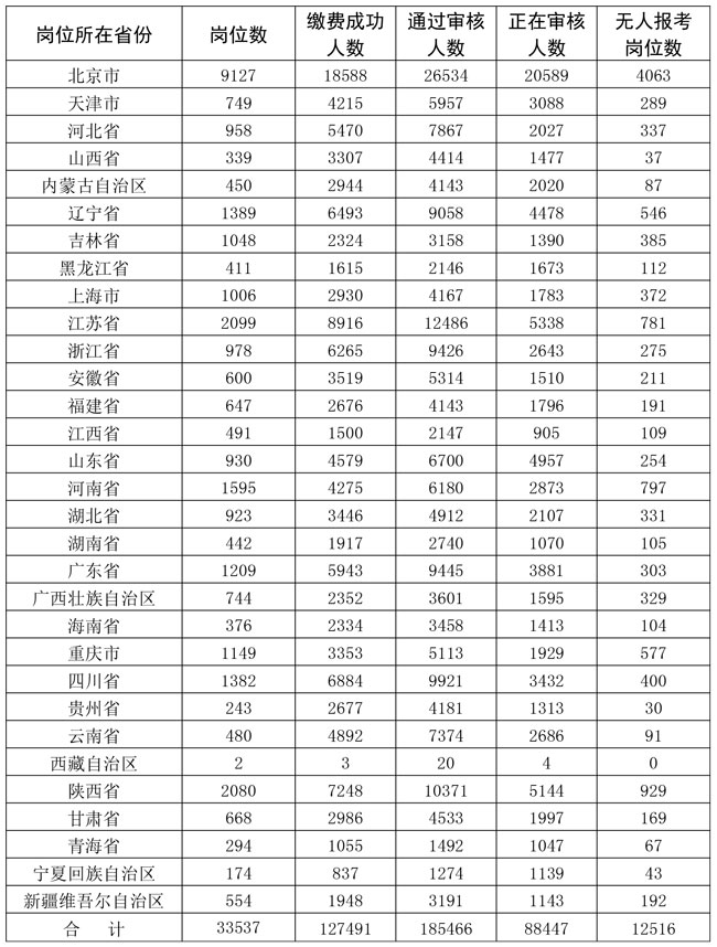 1.截至1月16日17時(shí)各省份崗位報(bào)考情況統(tǒng)計(jì)表