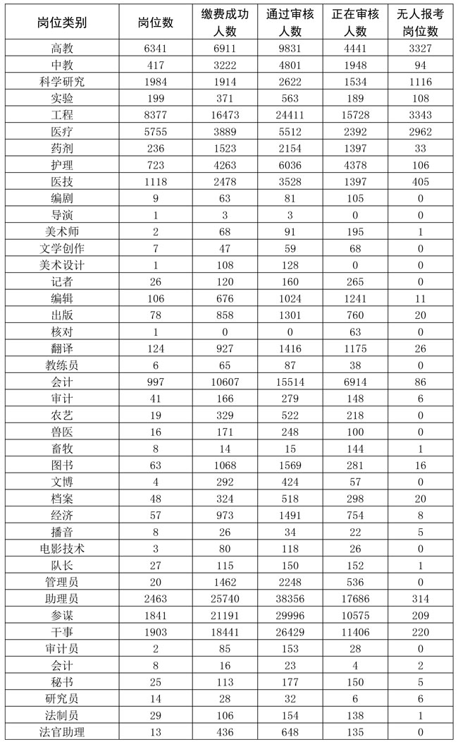2.截至1月16日17時(shí)各崗位類別報(bào)考情況統(tǒng)計(jì)表