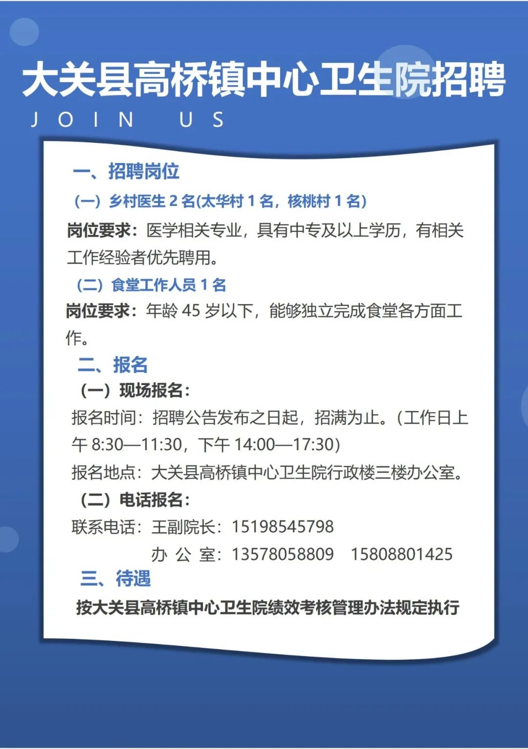 2023年昭通市大關縣高橋鎮(zhèn)中心衛(wèi)生院招聘簡章