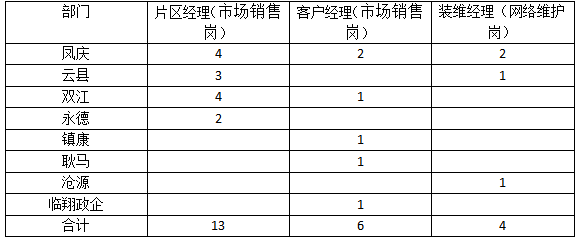 市場銷售崗位19人,網(wǎng)絡(luò)維護(hù)人員4人(年齡20-45歲,應(yīng)屆畢業(yè)生優(yōu)先、有經(jīng)驗(yàn)者優(yōu)先)