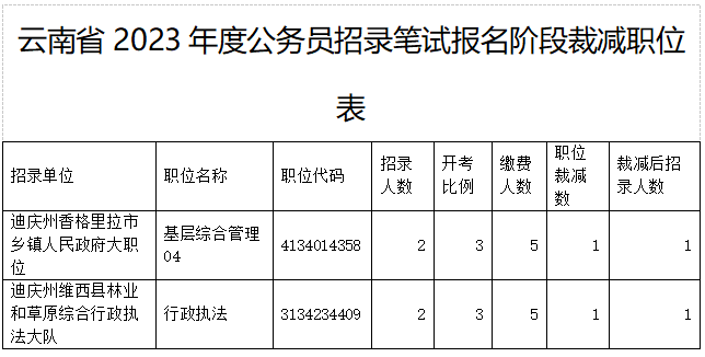 2.云南省2023年度公務(wù)員招錄筆試報名階段裁減職位表