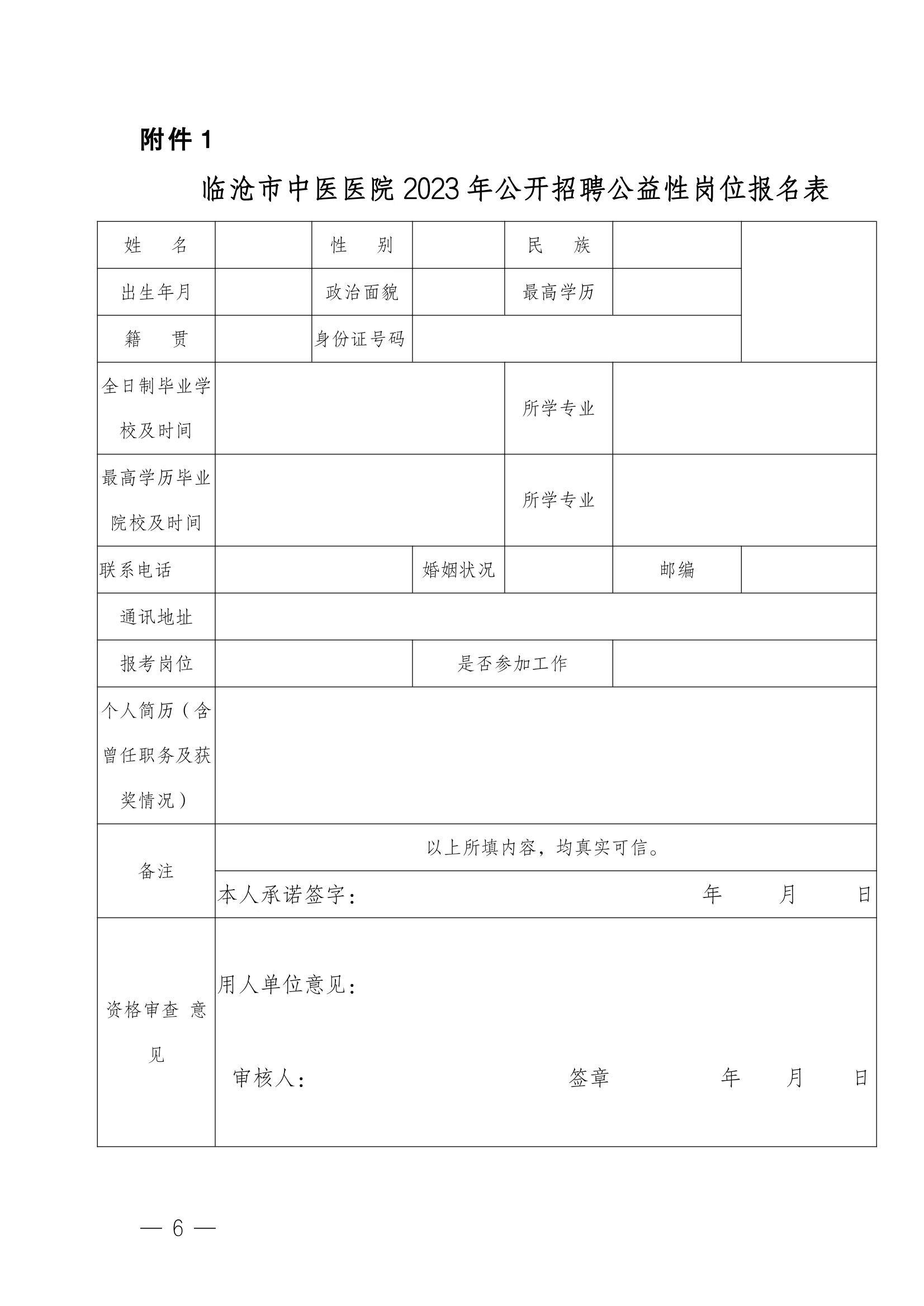 附件:1.臨滄市中醫(yī)醫(yī)院 2023 年公開招聘公益性崗位報(bào)名表