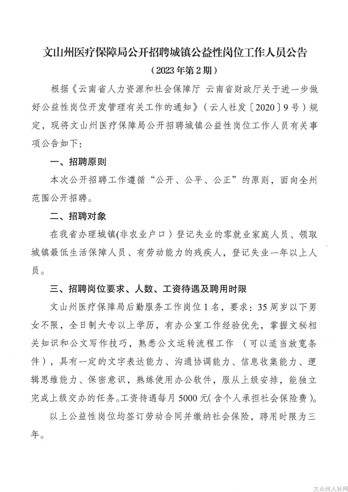 文山州醫(yī)療保障局公開招聘城鎮(zhèn)公益性崗位工作人員公告