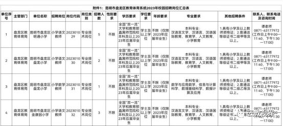 昆明市盤龍區(qū)教育體育局部分公辦學(xué)校,面向西南大學(xué)及其他全國“雙一流”大學(xué)和教育部直屬師范院校開展2023年校園招聘,招聘2023年本科及以上應(yīng)屆畢業(yè)生20人。