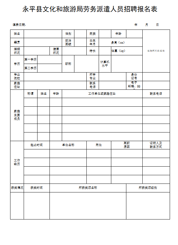 此公告附件:《永平縣文化和旅游局勞務(wù)派遣人員招聘報(bào)名表》