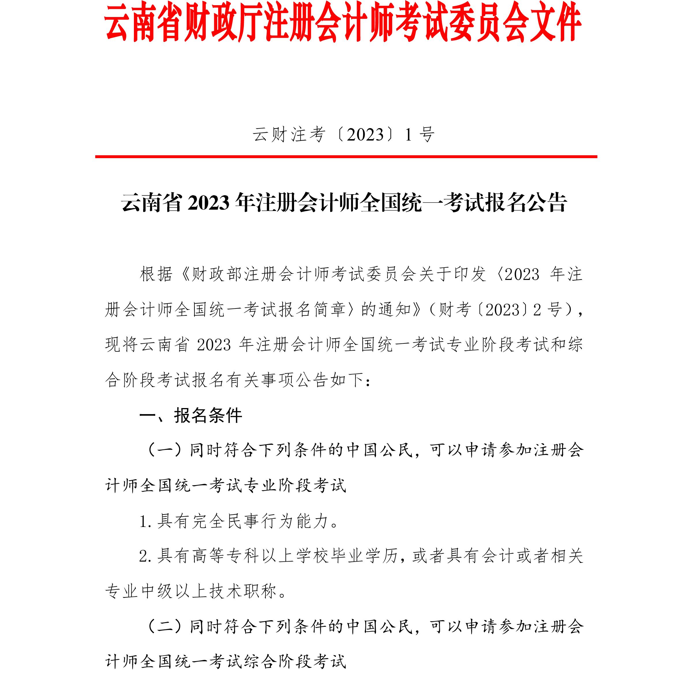 云南省2023年注冊會計(jì)師全國統(tǒng)一考試報(bào)名公告.pdf