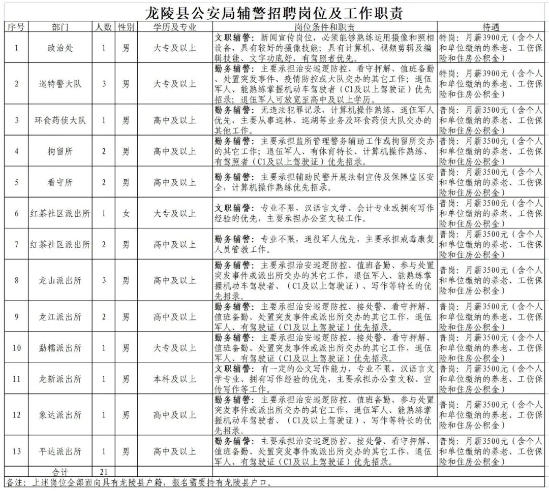根據(jù)工作需要,龍陵縣公安局?jǐn)M面向社會(huì)公開招聘警務(wù)輔助人員21人,現(xiàn)將有關(guān)事項(xiàng)公告如下: