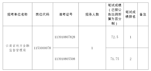 (三)資格復(fù)審遞補(bǔ)時(shí)間、地點(diǎn)以及遞補(bǔ)人員由云南省地方金融監(jiān)督管理局人事處電話通知,請(qǐng)考生保持電話暢通。