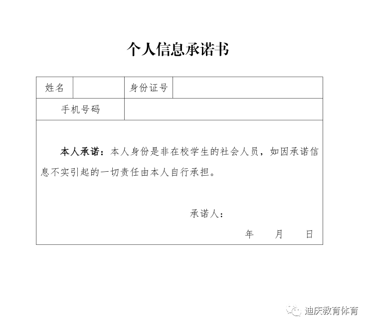 (一)測試當日,考生按照測試站規(guī)定的時間、地點,攜帶本人二代身份證原件及考生本人填寫并簽字確認的《個人信息承諾書》(附件1)到達測試站參加測試。超過規(guī)定時間30分鐘、未攜帶本人二代身份證原件的考生不得參加測試。