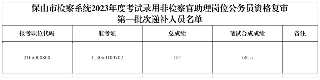 附件:保山市檢察系統(tǒng)2023年度考試錄用非檢察官助理崗位公務(wù)員資格復(fù)審第一批次遞補人員名單