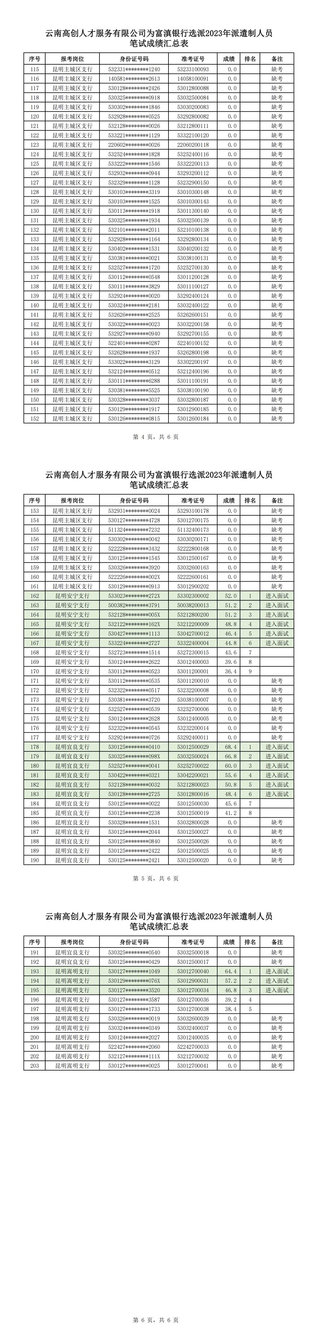 附件:云南高創(chuàng)人才服務(wù)有限公司為富滇銀行選派2023年勞務(wù)派遣制人員筆試成績(jī)匯總表