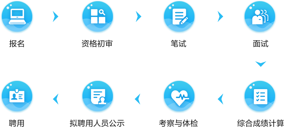 考察合格的應(yīng)聘人員須到有資質(zhì)的縣級及以上醫(yī)院體檢,體檢標(biāo)準(zhǔn)應(yīng)參照《公務(wù)員錄用體檢通用標(biāo)準(zhǔn)(試行)》及相關(guān)規(guī)定執(zhí)行。體檢費用由應(yīng)聘人員自理。體檢不合格或者放棄應(yīng)聘的,依綜合成績從高至低依次遞補人選。