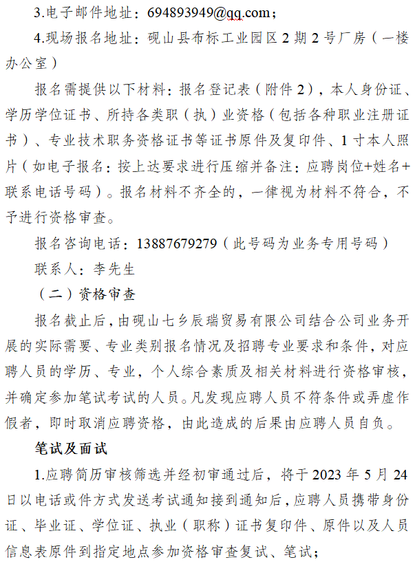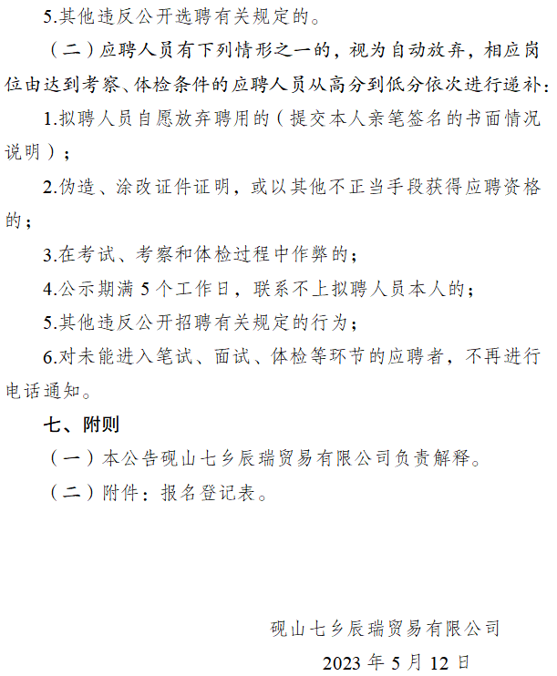 硯山七鄉(xiāng)辰瑞貿(mào)易有限公司2023年公開招聘工作人員的公告 來源:http://yanshan.gov.cn/zfxxgkqcscxx/zfxxgkzn322/zpxx1/content_75587