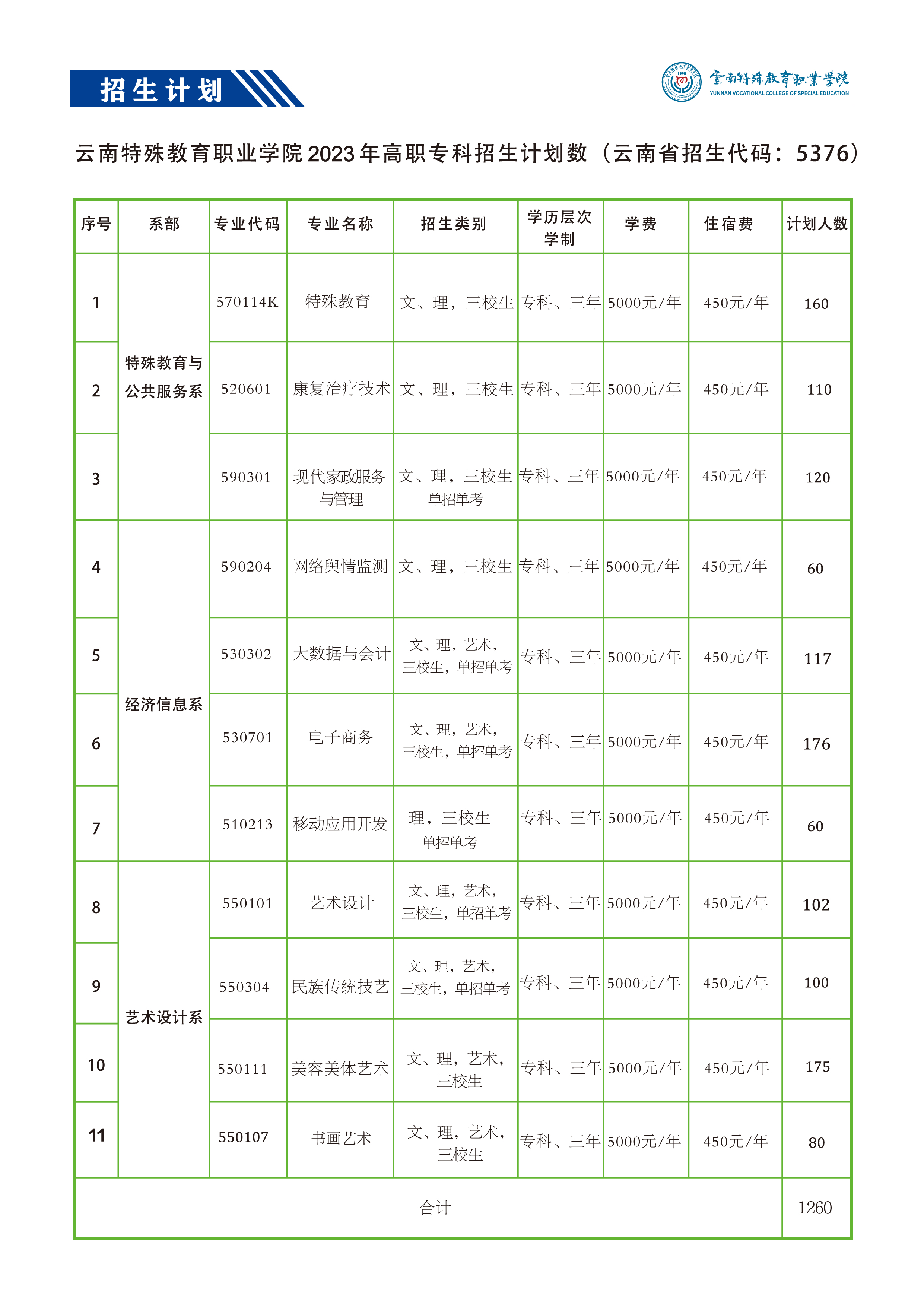 云南特殊教育職業(yè)學院2023年大專招生簡章