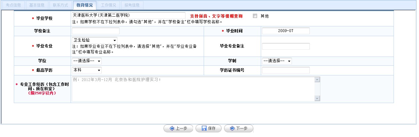 (4)第四項(xiàng),填寫教育情況信息,見下圖: