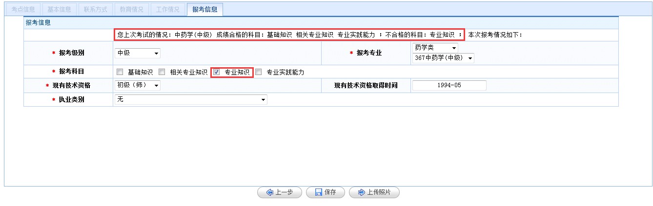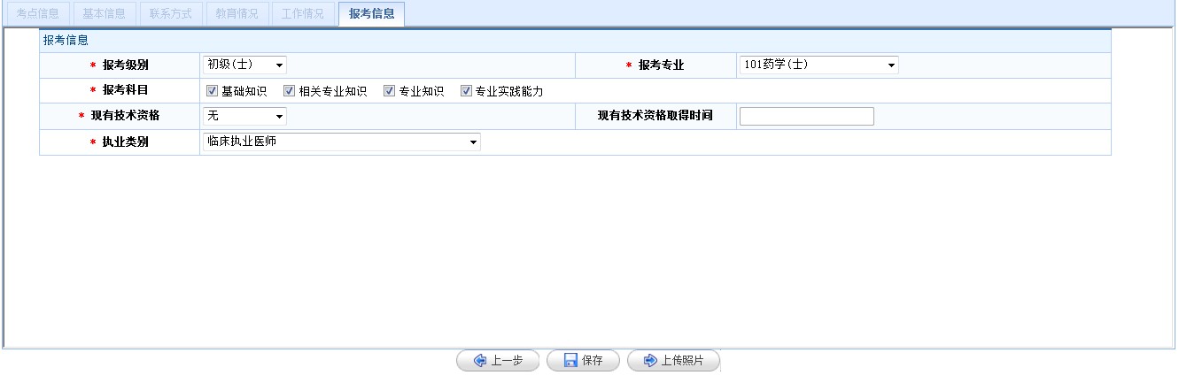 a)報(bào)考級別、報(bào)考專業(yè)、報(bào)考科目、現(xiàn)有技術(shù)資格、執(zhí)業(yè)類別為系統(tǒng)標(biāo)準(zhǔn)代碼,只能從下拉菜單中進(jìn)行選擇錄入,不能手動填寫;