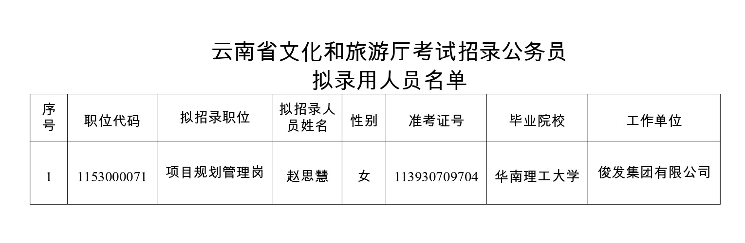 附件:云南省文化和旅游廳考試招錄公務(wù)員擬錄用人員名單
