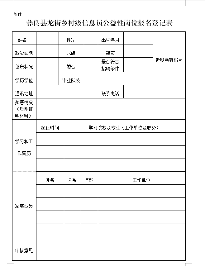 附件:彝良縣龍街鄉(xiāng)村級(jí)信息員公益性崗位報(bào)名表