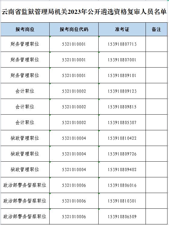 附件:云南省監(jiān)獄管理局機(jī)關(guān)2023年公開遴選資格復(fù)審人員名單