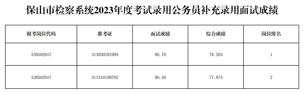 2023年保山市檢察系統(tǒng)考試錄用公務員補充錄用面試成績