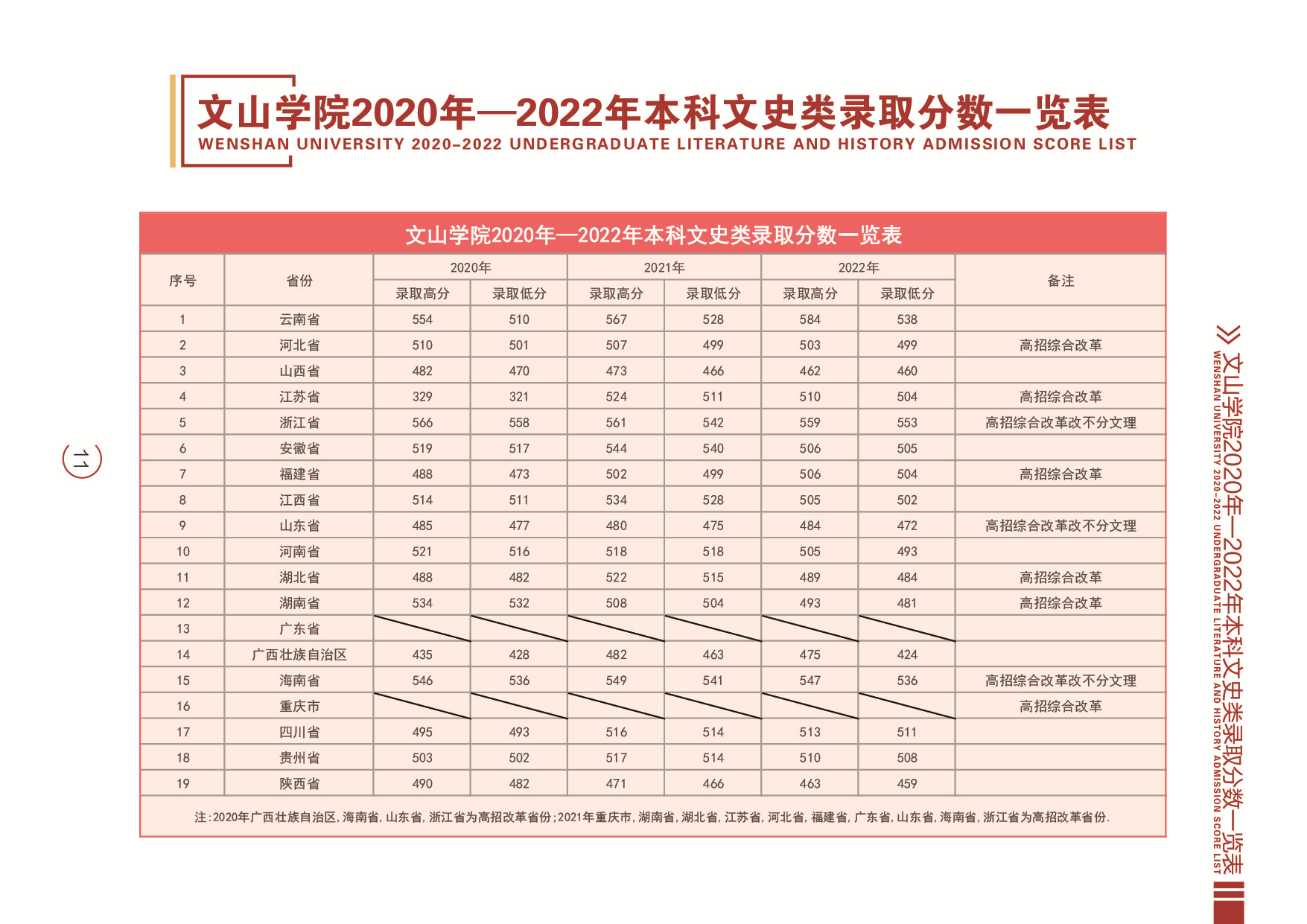 2023年文山學(xué)院招生錄取分?jǐn)?shù)統(tǒng)計(jì)三(