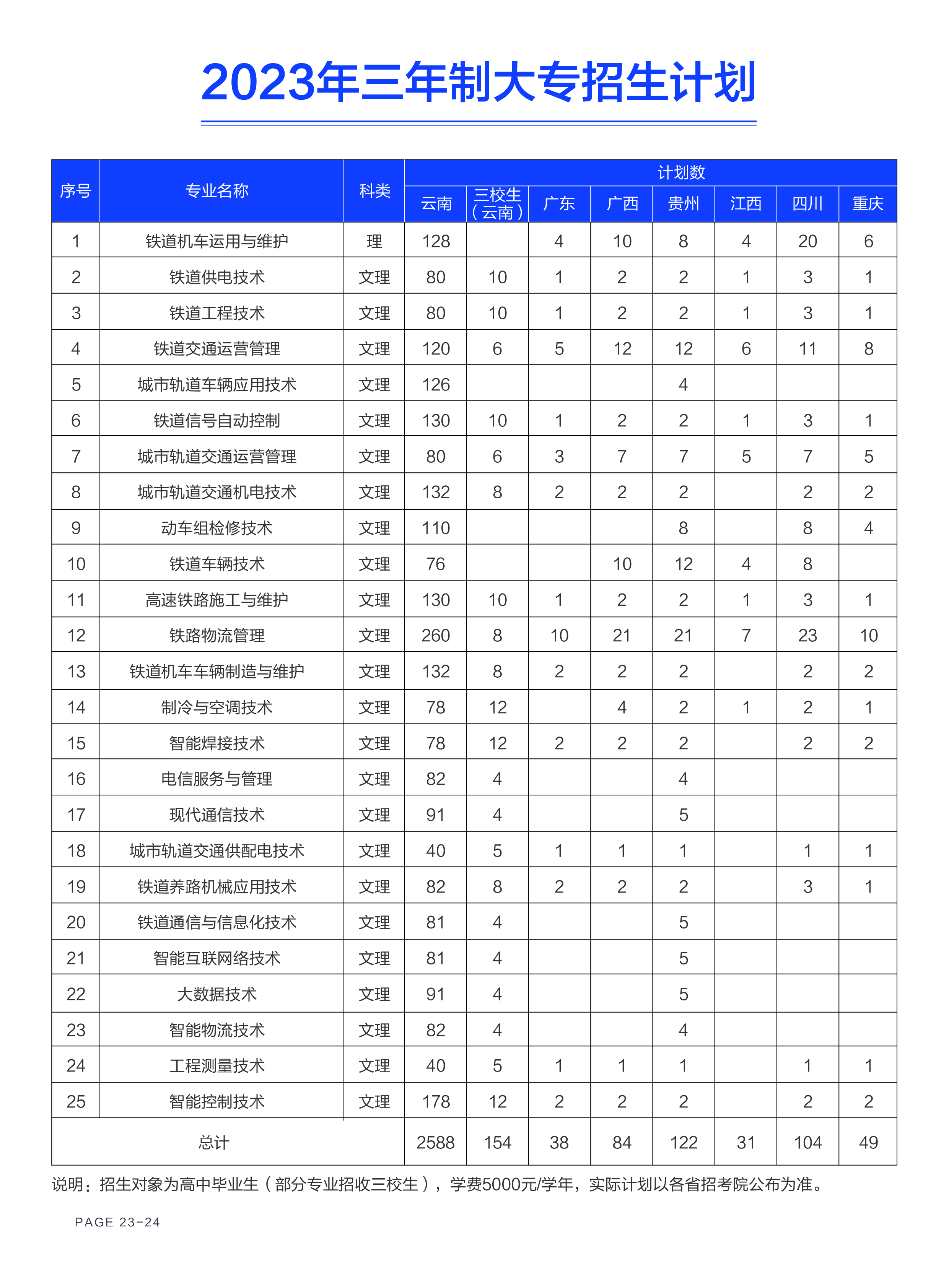 2023年昆明鐵道職業(yè)技術(shù)學(xué)院學(xué)校三年制大專招生計(jì)劃