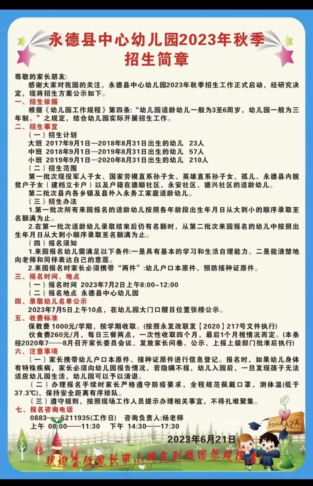 2023年臨滄市永德縣中心幼兒園秋季招生簡(jiǎn)章