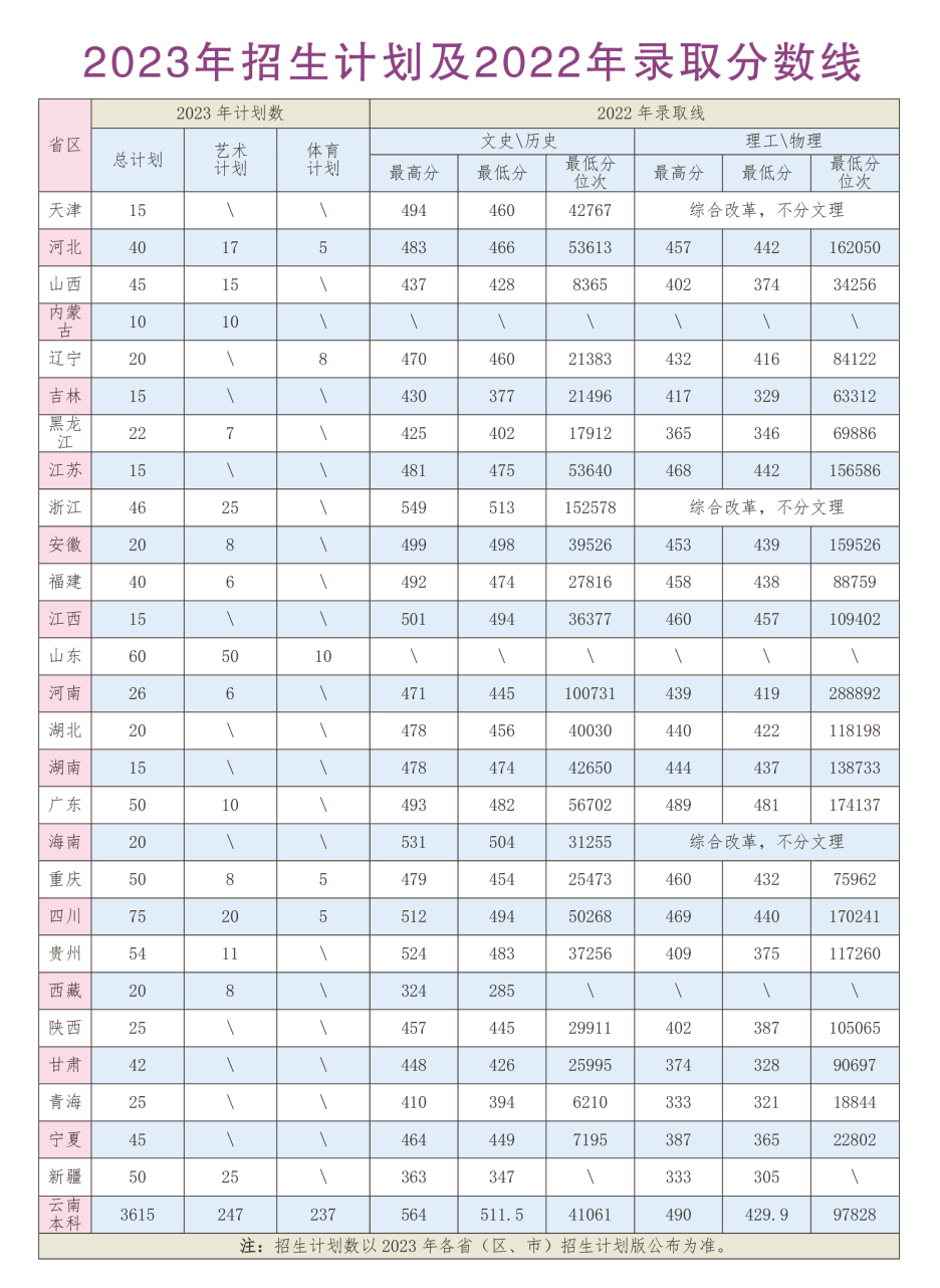 2023年招生計(jì)劃及2022年錄取分?jǐn)?shù)線
