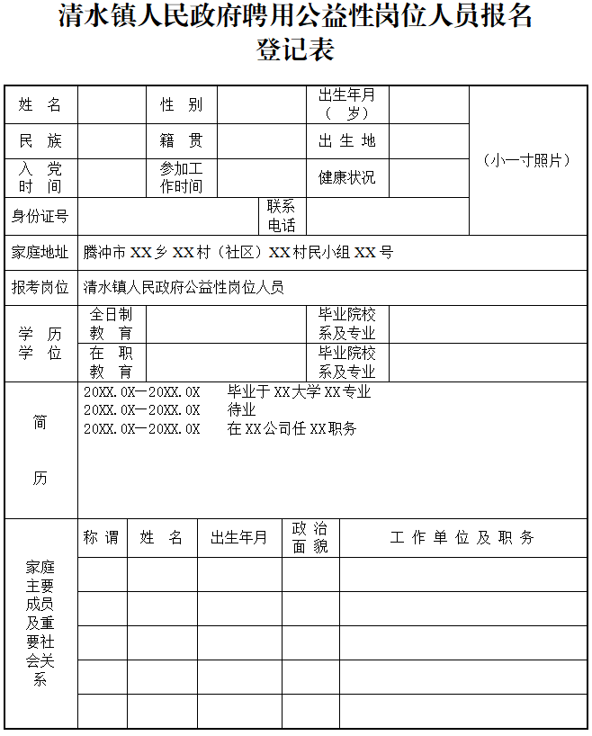 附件:清水鎮(zhèn)人民政府聘用公益性崗位人員報(bào)名登記表