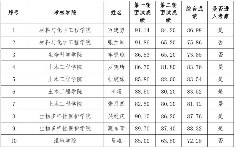 西南林業(yè)大學(xué)2023年6月26日公開招聘面試成績及進(jìn)入考察人員公示