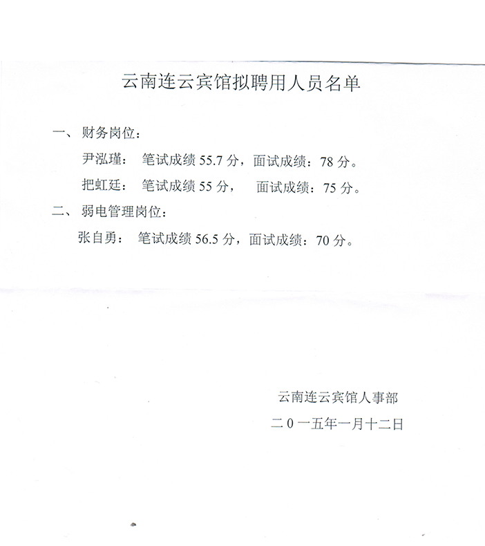 云南大學(xué)滇池學(xué)院2014年12月份招聘擬聘人員的公示