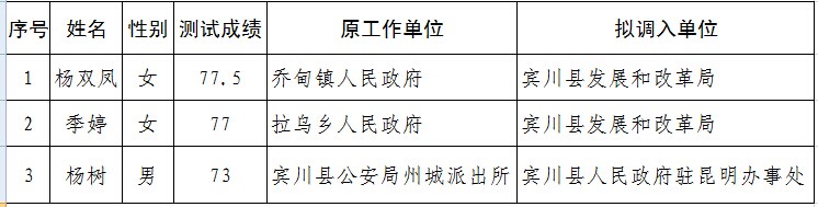 賓川縣2014—2015年政府系統(tǒng)公開選調公務員擬調動人選公示