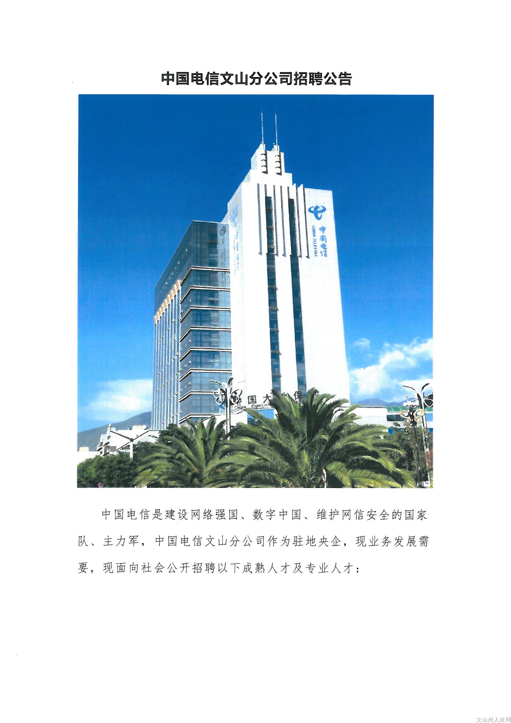 2023年中國電信文山分公司招聘公告