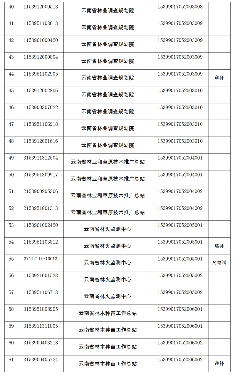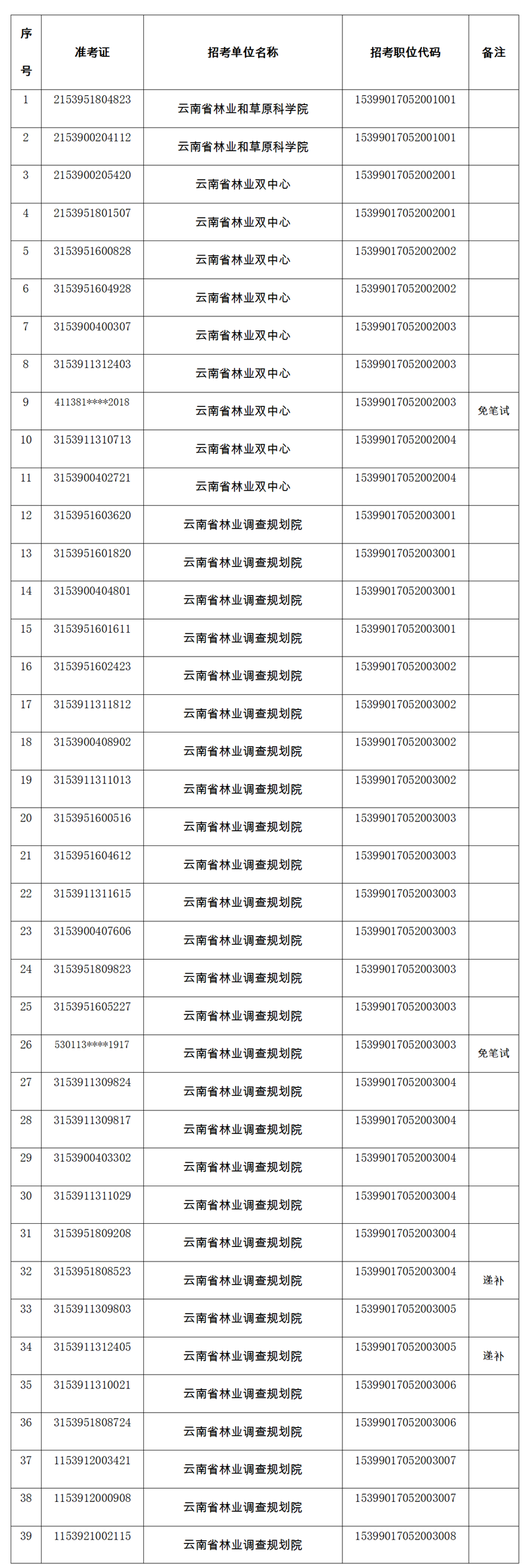 云南省林業(yè)和草原局2023年事業(yè)單位公開招聘工作人員面試人員名單