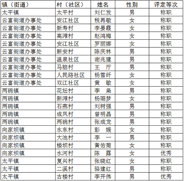水富縣大學(xué)生村官年度考核等次情況統(tǒng)計表