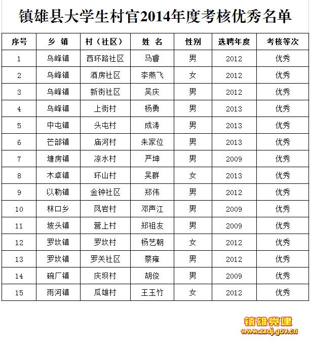 附:鎮(zhèn)雄縣大學(xué)生村官2014年度考核優(yōu)秀名單