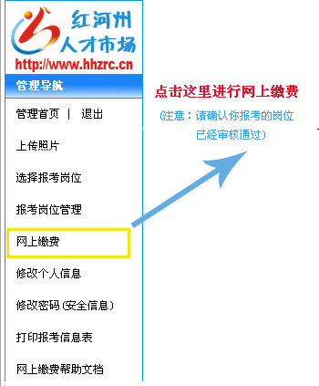 1、點(diǎn)擊網(wǎng)上繳費(fèi)(必須確認(rèn)你報(bào)考的崗位已經(jīng)審核通過)