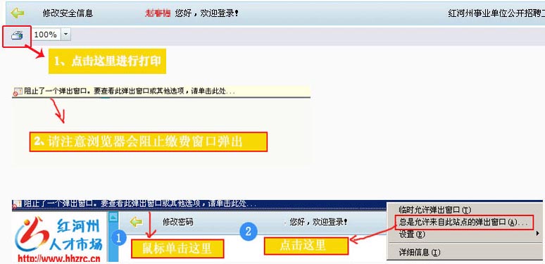 完成以上操作后,再進(jìn)入詳細(xì)信息頁(yè),點(diǎn)擊打印圖標(biāo)(在此,可能瀏覽器會(huì)阻止彈出打印窗口,那么請(qǐng)按下圖步驟操作);