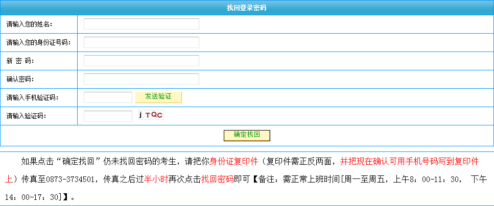 點(diǎn)擊登錄界面上的“找回密碼”進(jìn)入密碼找回頁(yè)面,然后按要求填寫相關(guān)信息,請(qǐng)務(wù)必正確填寫姓名和身份證號(hào),填寫完姓名和身份證號(hào)及新密碼以后,點(diǎn)擊“發(fā)送驗(yàn)證”按鈕,手機(jī)將收到一條驗(yàn)證碼,把手機(jī)驗(yàn)證碼輸入對(duì)應(yīng)文本框中,并輸入圖片驗(yàn)證碼后點(diǎn)擊“確定找回”,系統(tǒng)將會(huì)提示修改成功。