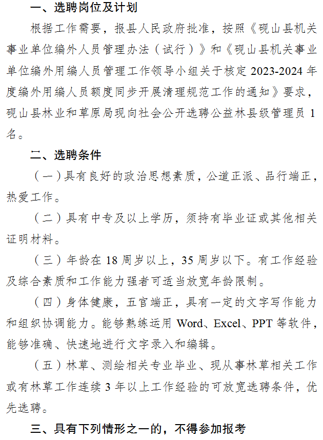 硯山縣林業(yè)和草原局公開(kāi)選聘空缺公益林縣級(jí)管理員公告